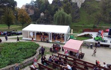 Na přelomu září a října se objevil náš party stan Roma o rozměru 10x15m na 10.ročníku Vinobraní na hradě Loket. Party stan měl z jedné strany plně prosklené PVC stěny. Součástí dodávky byla také kazetová podlaha.